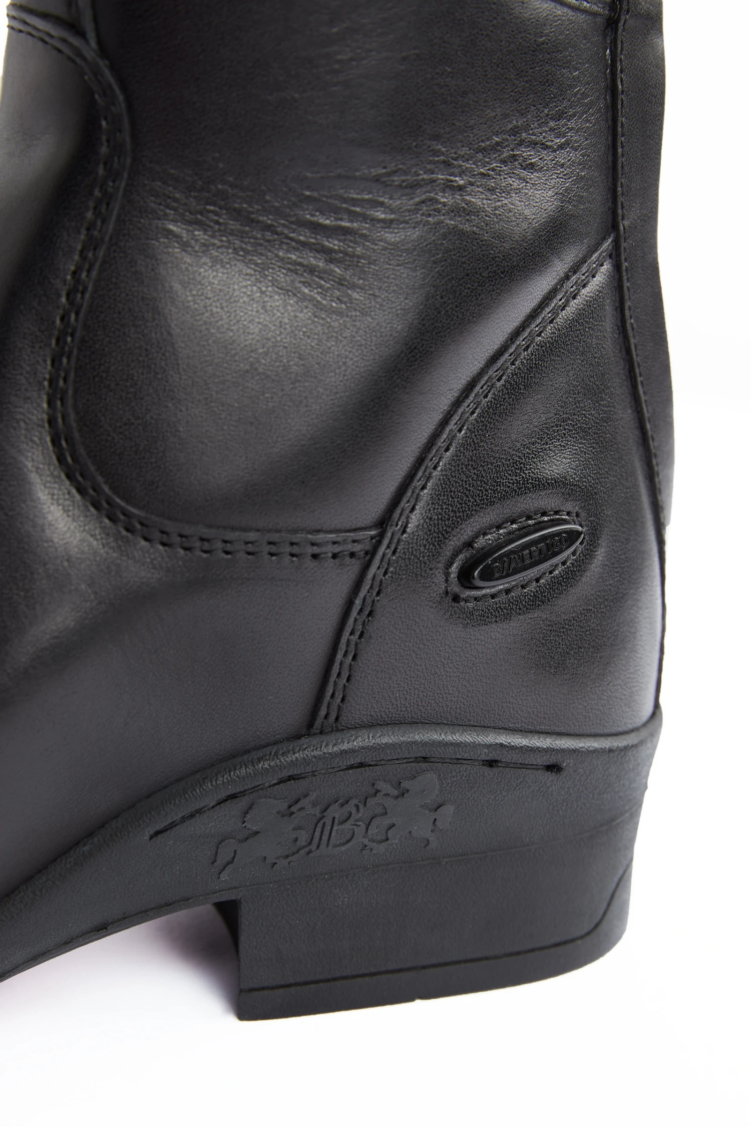 The B Vertigo Sirius Dressage riding boots are made from quality leather on the outside, and lined with soft foam between outer leather and leather lining. The classic timeless cut makes them ideal for tournaments, and a luxurious suede detail at the top adds extra glamour. A zipper at the back allows easy access. Pair them with your favourite show jacket and white breeches to look and feel your best at your next competition!