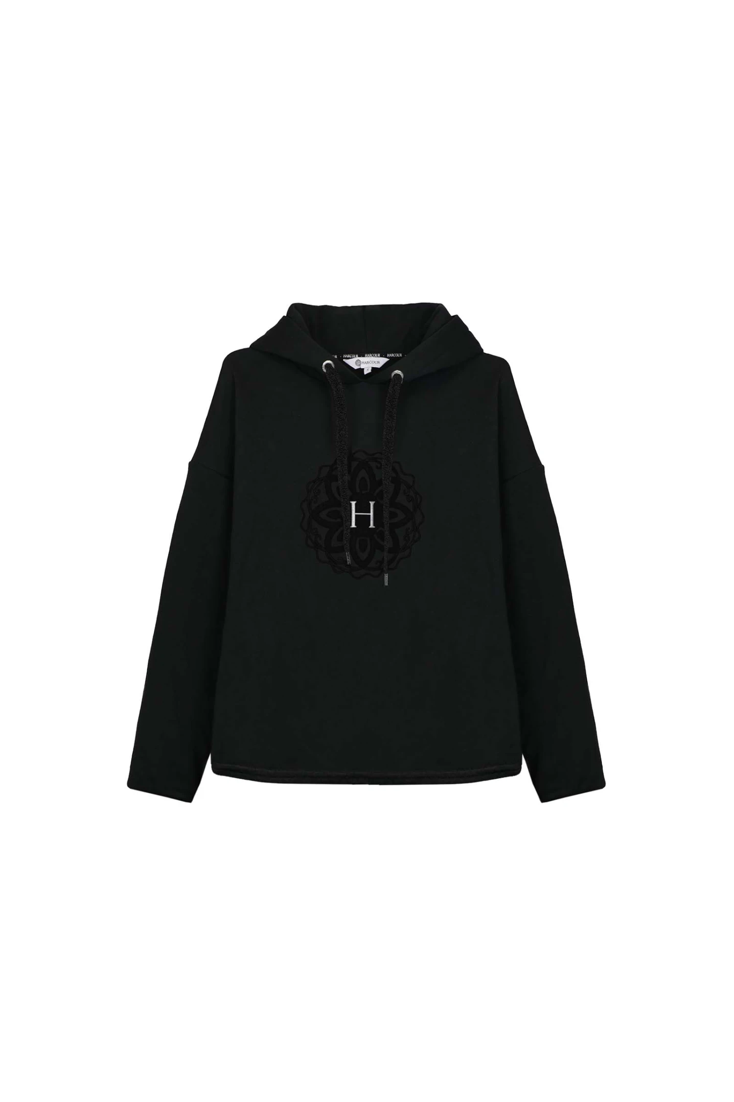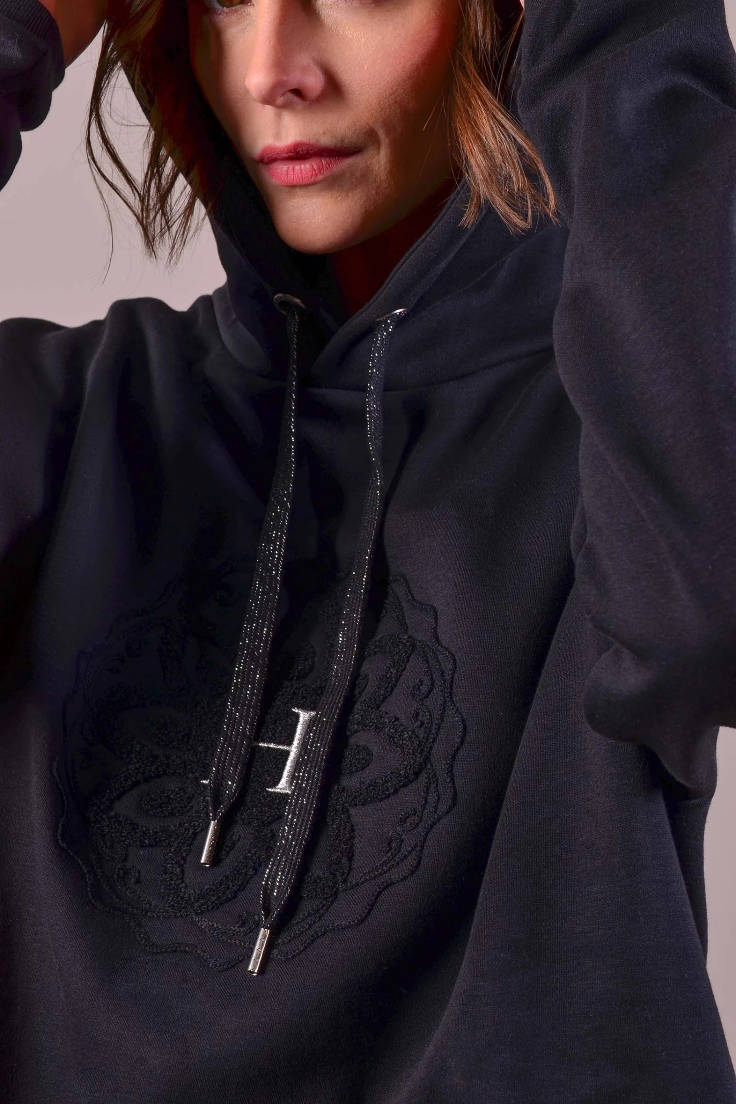 The Swity hoodie is made of cotton and polyester and combines softness and comfort. The loose fit gives a sportswear look and the rosette logo give it a unique and feminine cut. With jeans, breeches or even leggings, it can be worn in all circumstances.