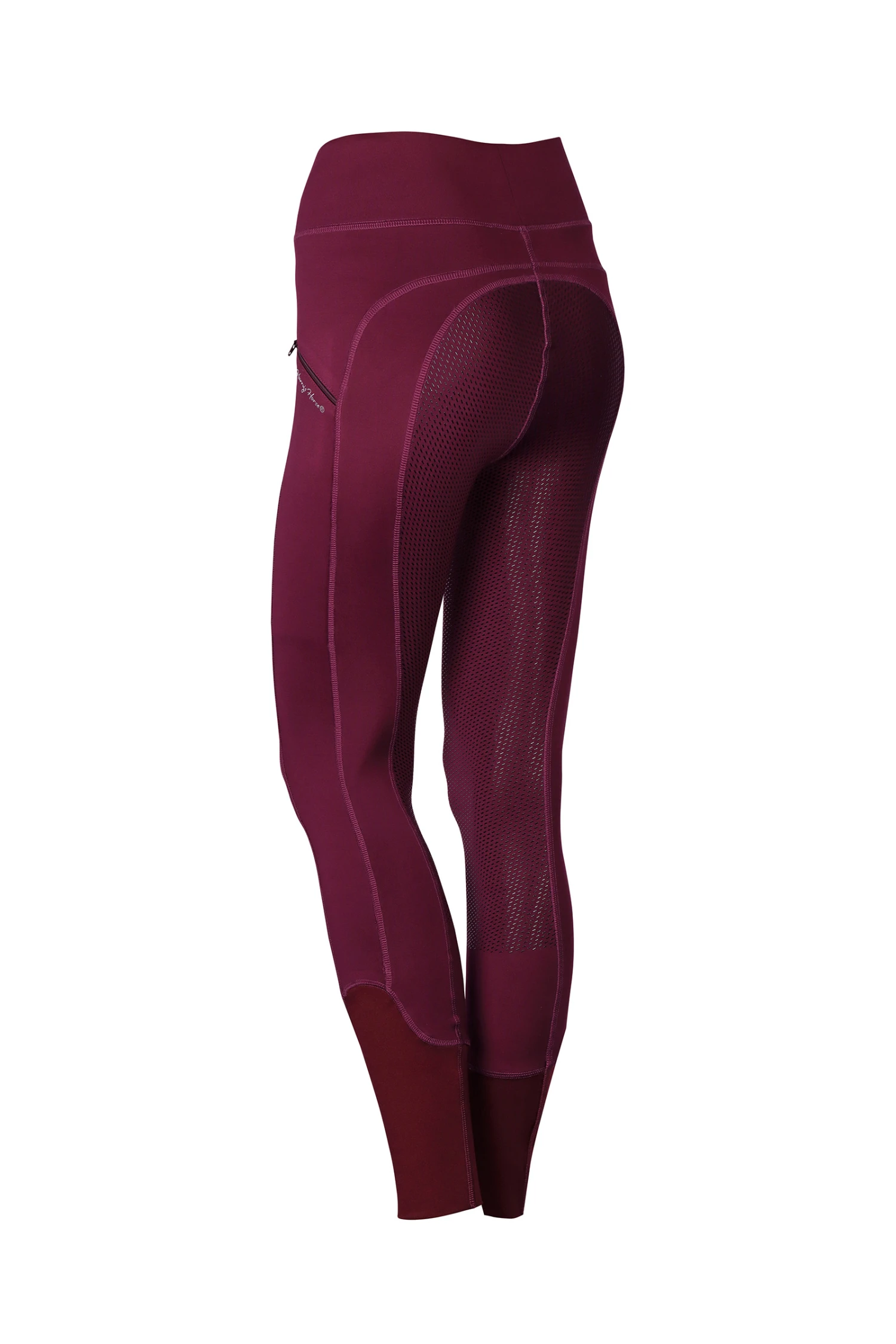 Riding tights made of a very comfortable and elastic fabric. The pants have two pockets with a zipper on the side, round stitched seat with silicone print for extra grip in the saddle and “flex legs” for extra comfort in the riding boots.