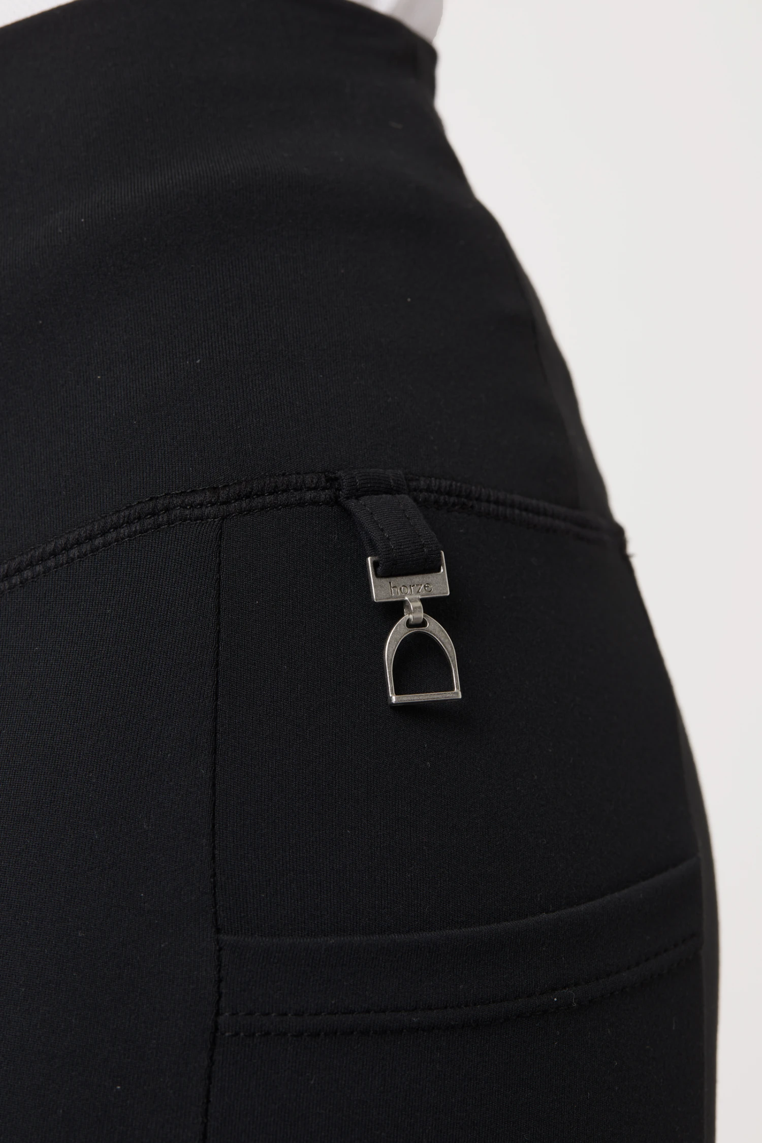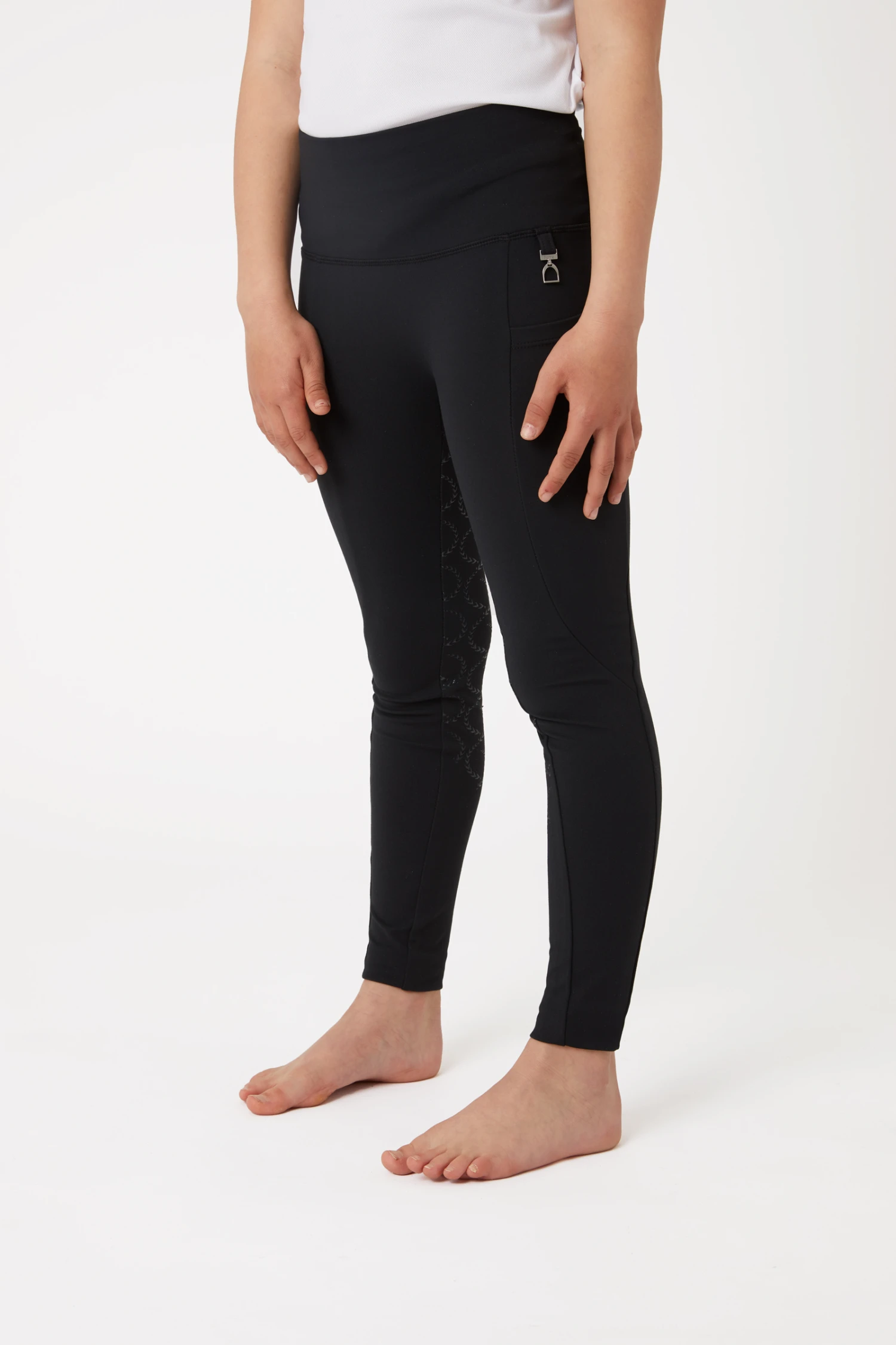 The Horze Gillian tights are made from firming material with compression functure. They give little riders’ legs the ultimate support while riding. A high waist keeps them in place and is perfect for tucking in their shirt. The silicone full seat ensures great grip to the saddle. Two thigh pockets keep small treasures safe. Choose from muted or bright colours what style fits best!