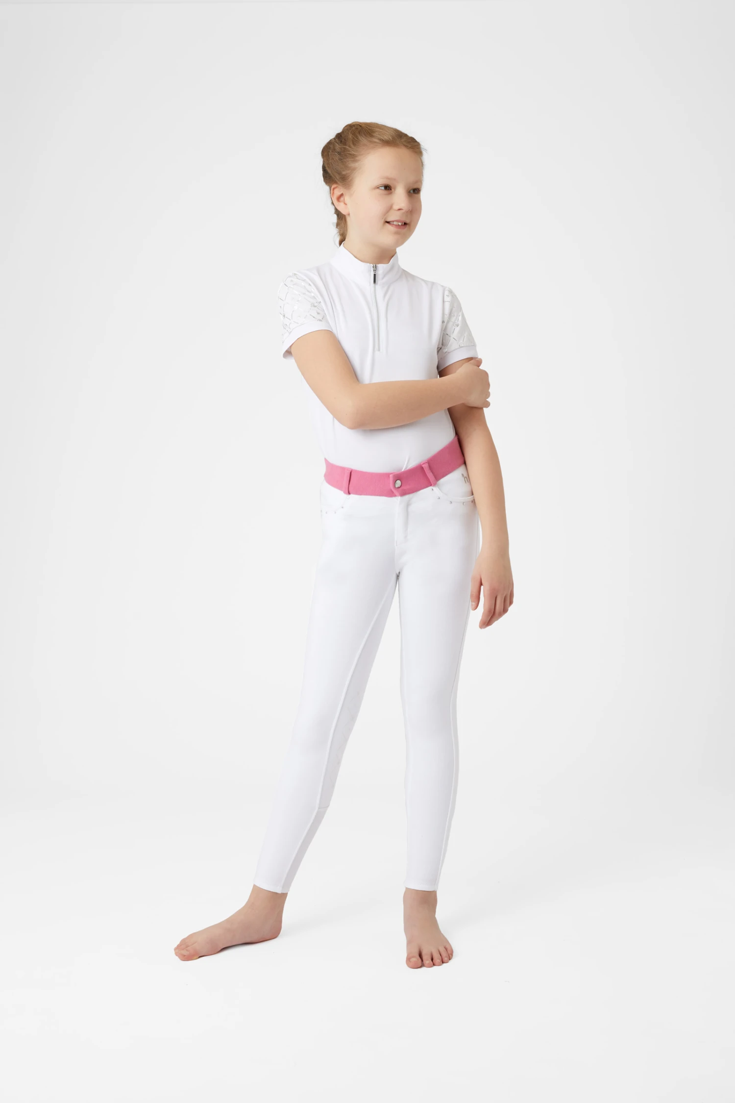 Crystal embellished pockets make these breeches a bit fancy, and the silicone print is a fun hearts-and-stars motif. The knitted cotton fabric is soft and stretchy, so pulling them on won’t be hard work, and the high waist ensures your young rider will ride in comfort.