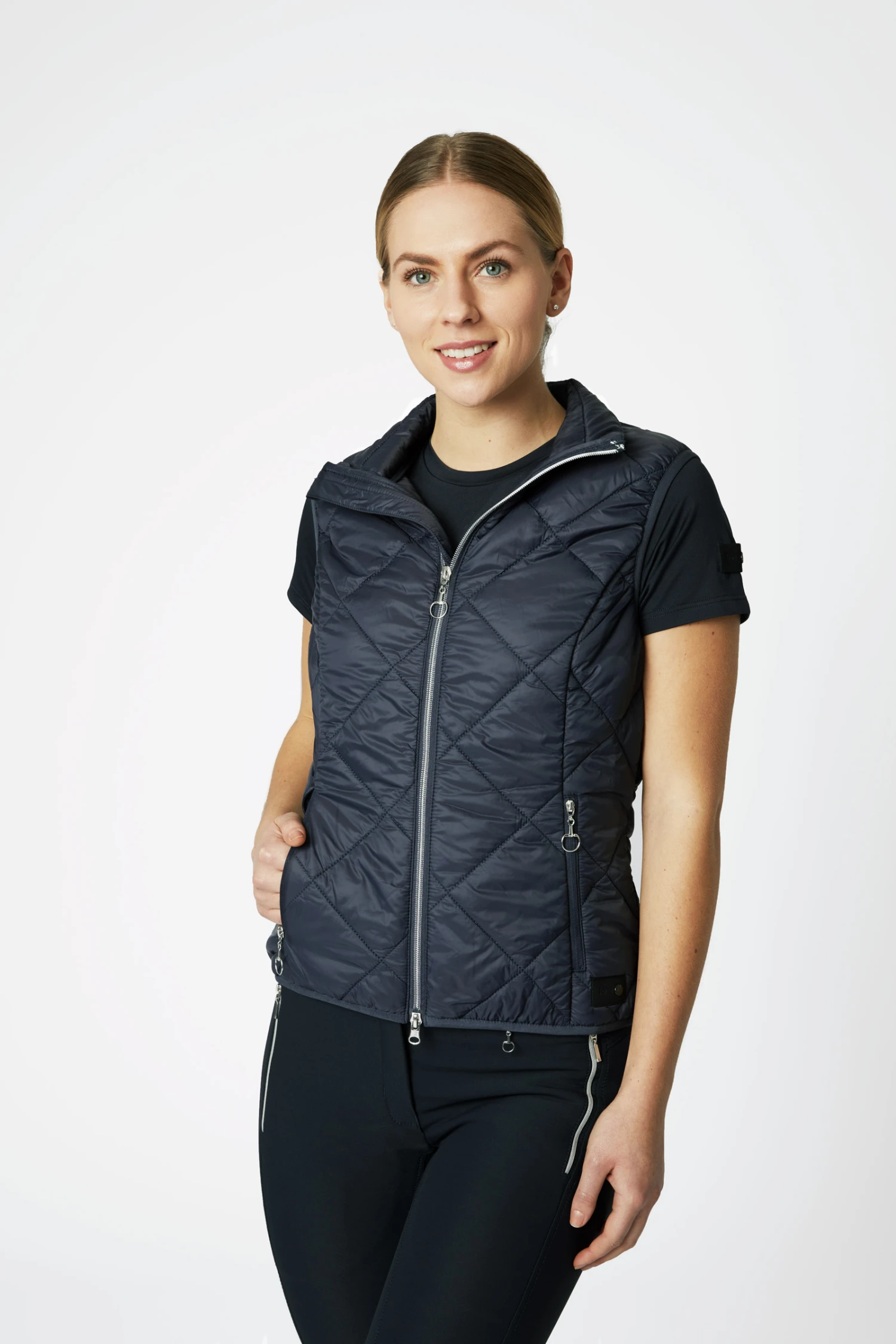 A lightweight padded vest is the perfect layer for midseason use or an early morning ride. The breathable fabric has elastic panels at the sides for a comfortable, tapered fit.