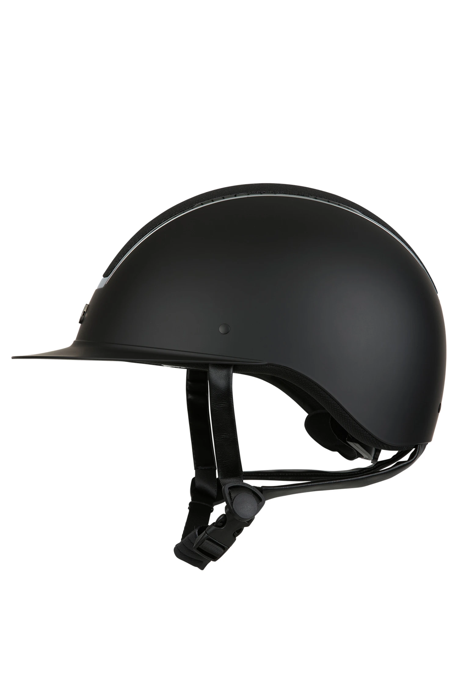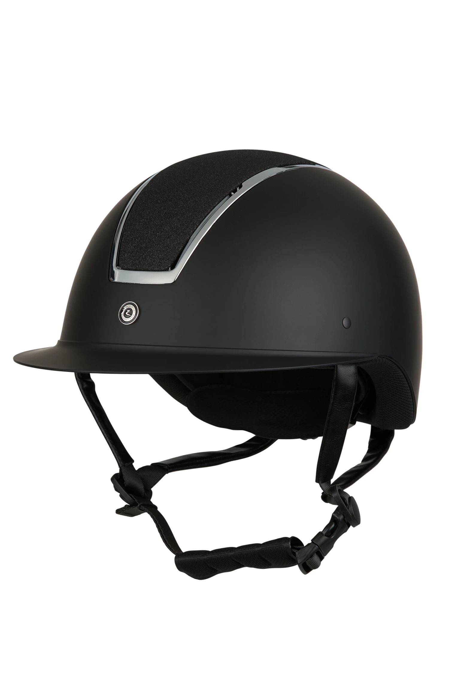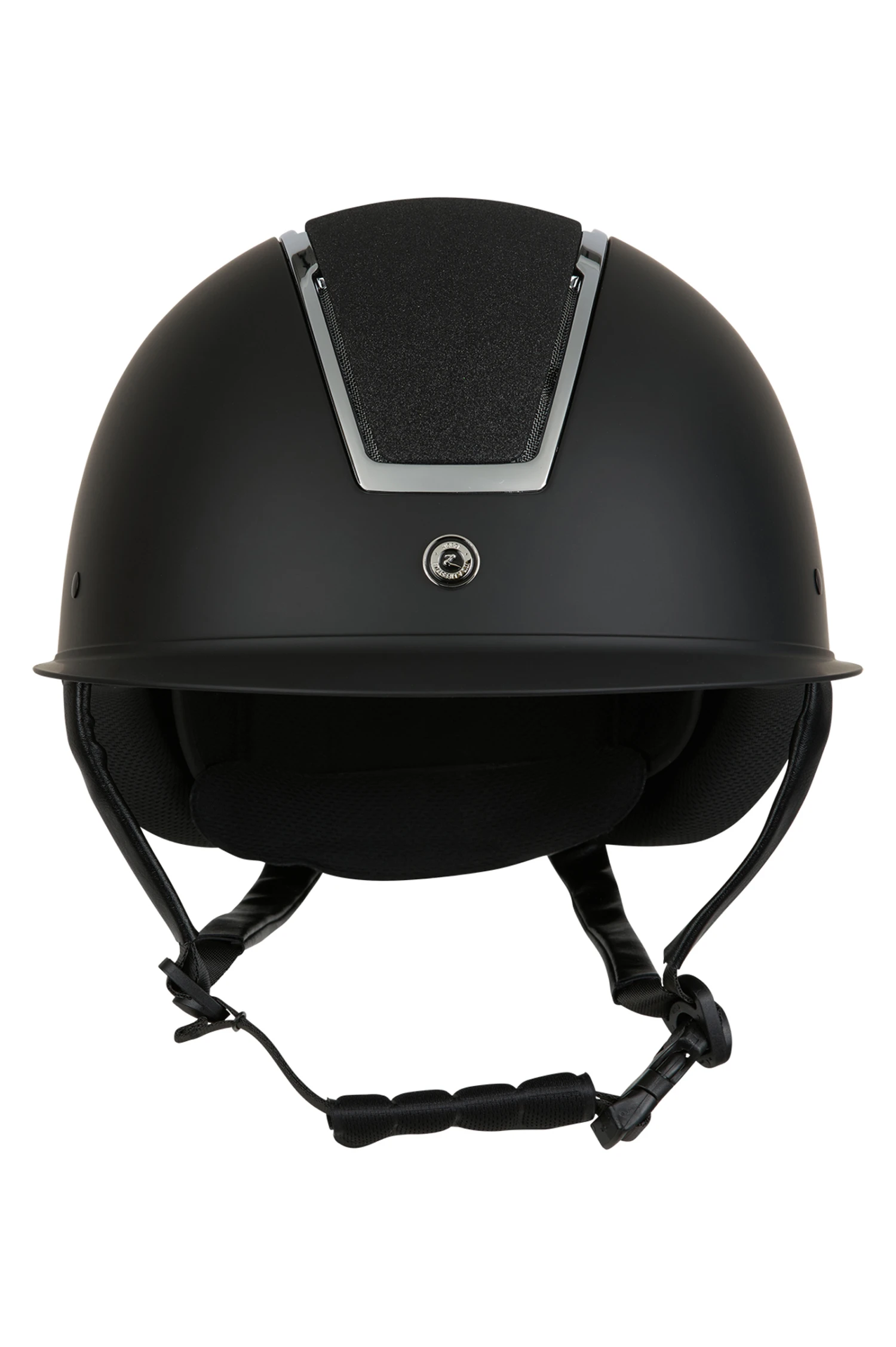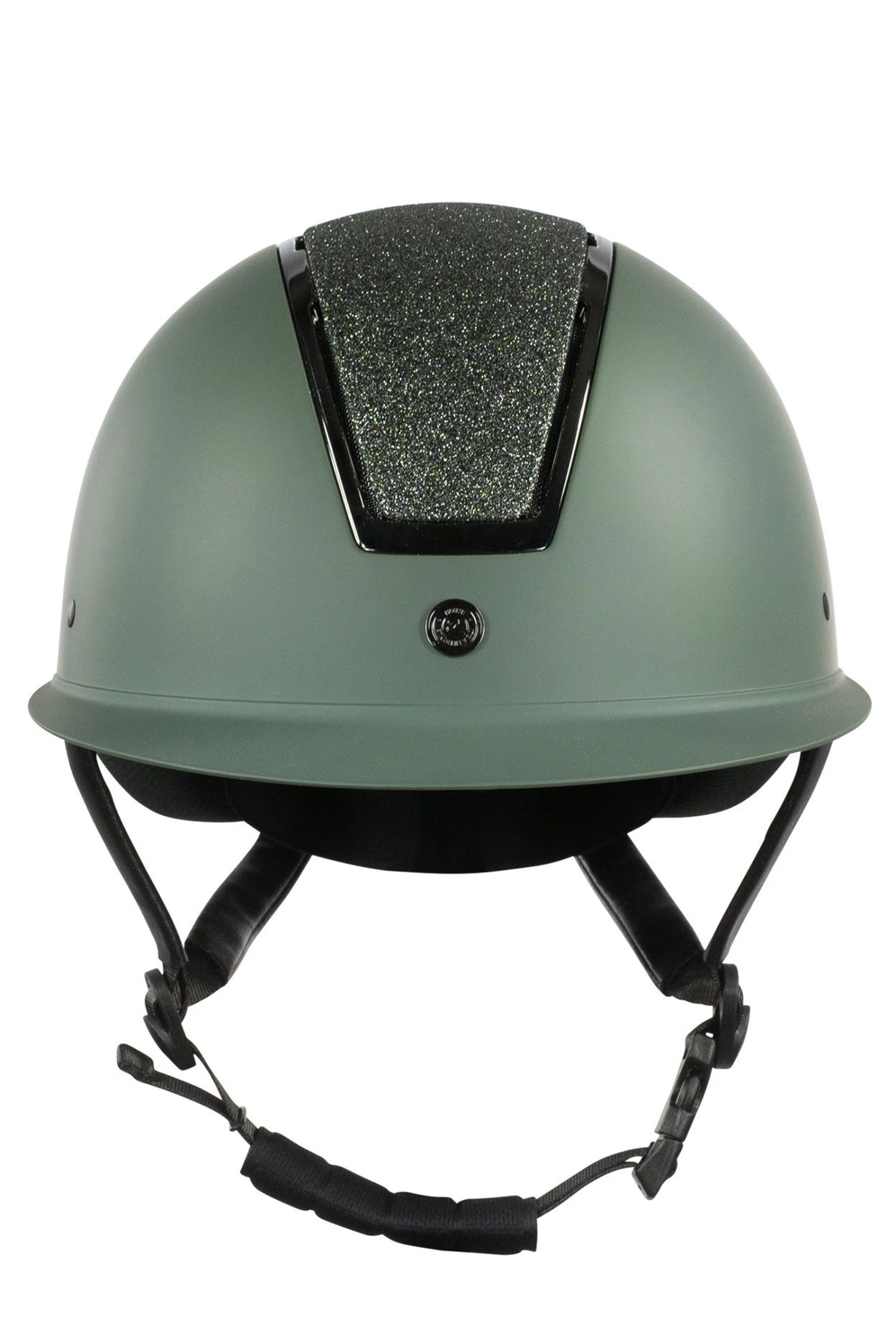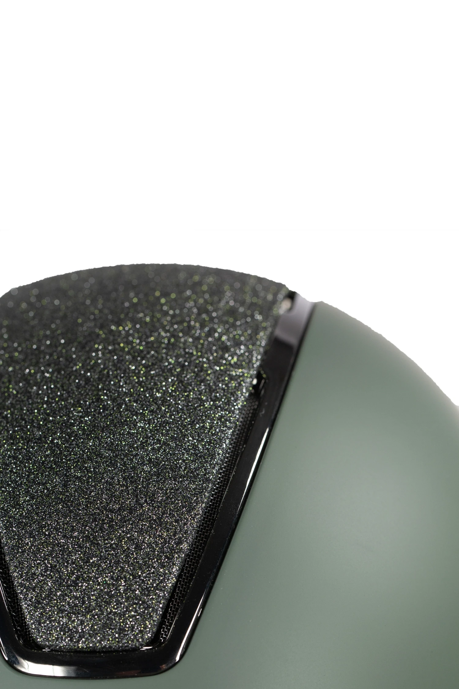 The Horze Monarch Helmet can withstand high impact, and ventilation slots offer comfort with plenty of air flow to keep your head cool. The shiny panels with glitter on the outer shell of the helmet add a touch of elegance to your riding outfit and come in a variety of stylish colours. The wide visor provides extra cover. The dial system allows you to adjust it for a perfect fit. Memory foam lining cradles your head in comfort while offering protection in the event of a fall. A flexible peak brim adds more safety. This helmet is not approved for BHS, BRC, British Eventing or The Pony Club.