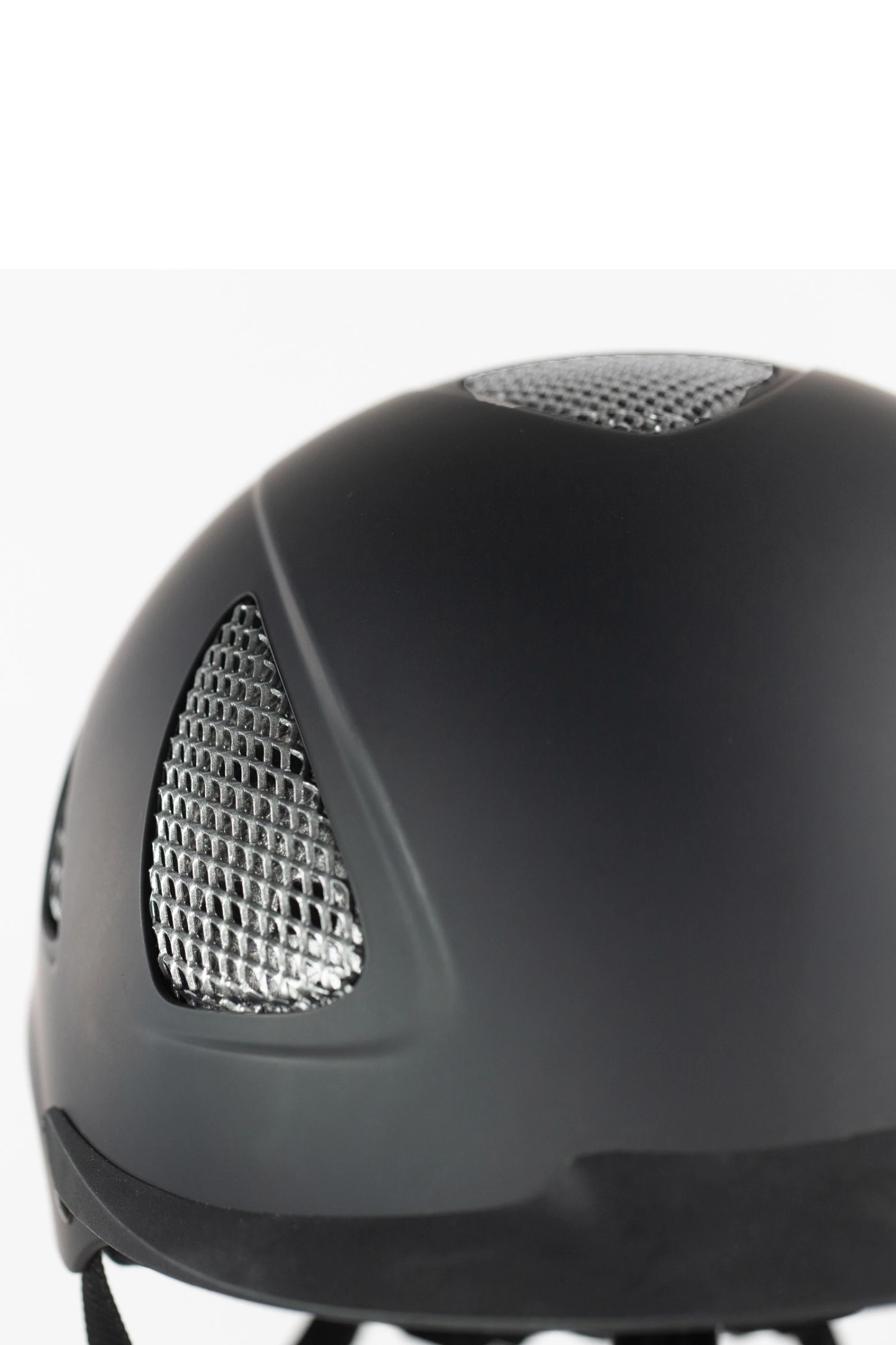 This sporty riding helmet can withstand high impact, and ventilation slots offer comfort with plenty of air flow to keep your head cool. The visor provides ideal protection. The dial system allows you to adjust it for a perfect fit. Memory foam lining cradles your head in comfort while offering protection in the event of a fall. A flexible peak brim adds more safety.