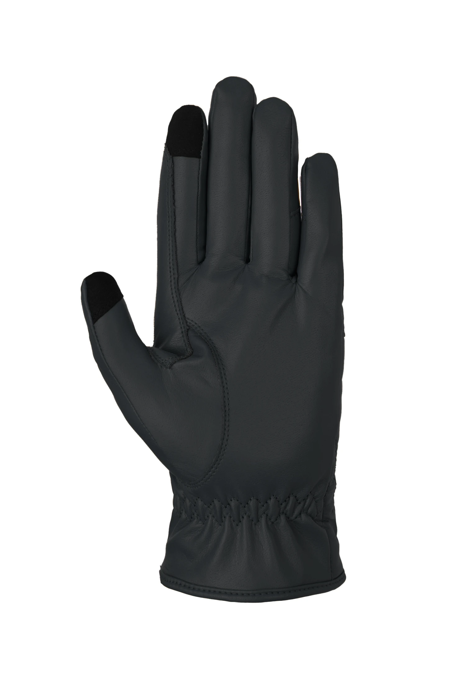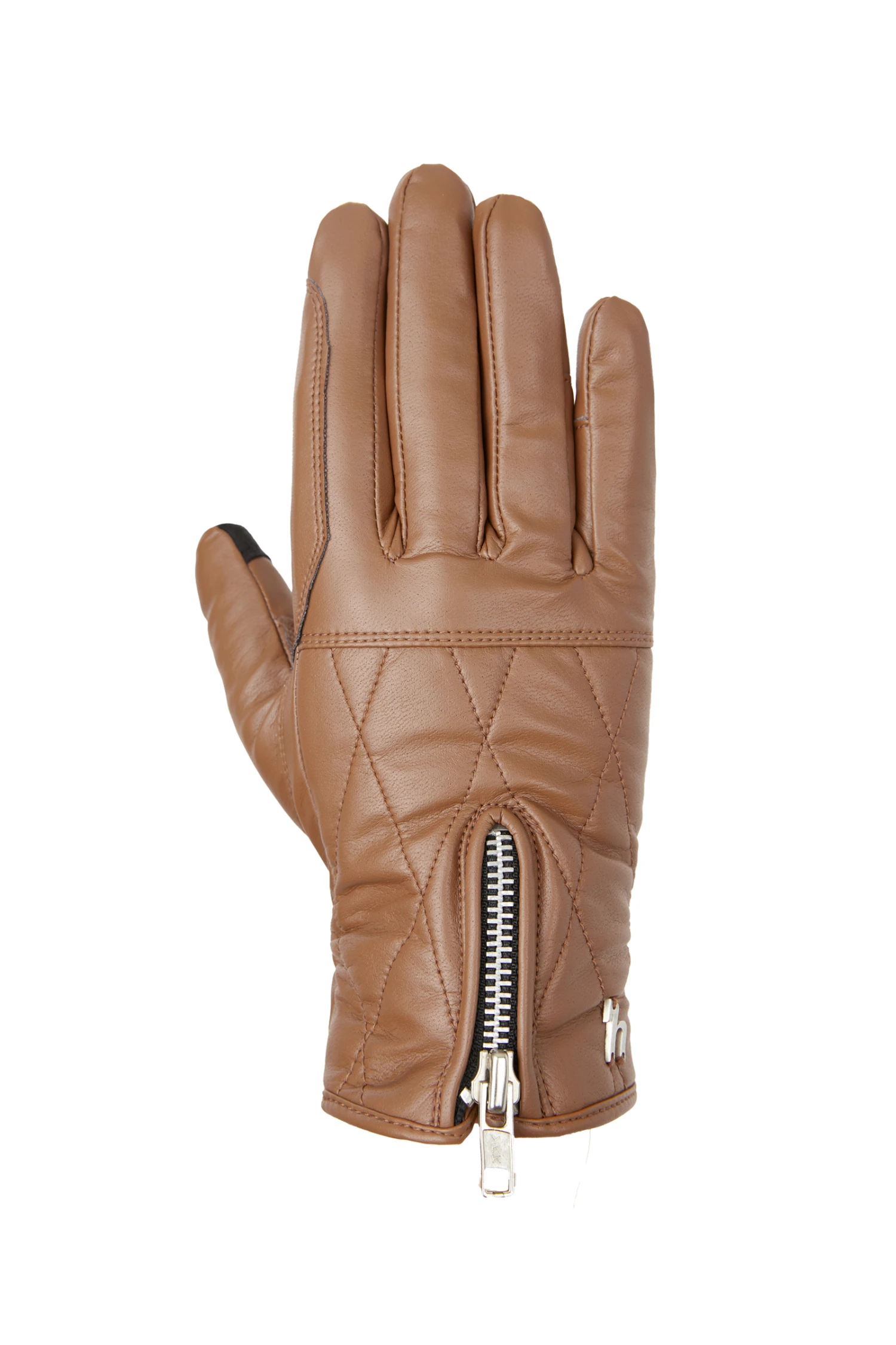 The soft Theresa riding gloves are made from vegan leather and warmly lined for winter rides. Quilting detail looks elegant, and a metal zipper closes quickly. An elastic cuff keeps the cold away.