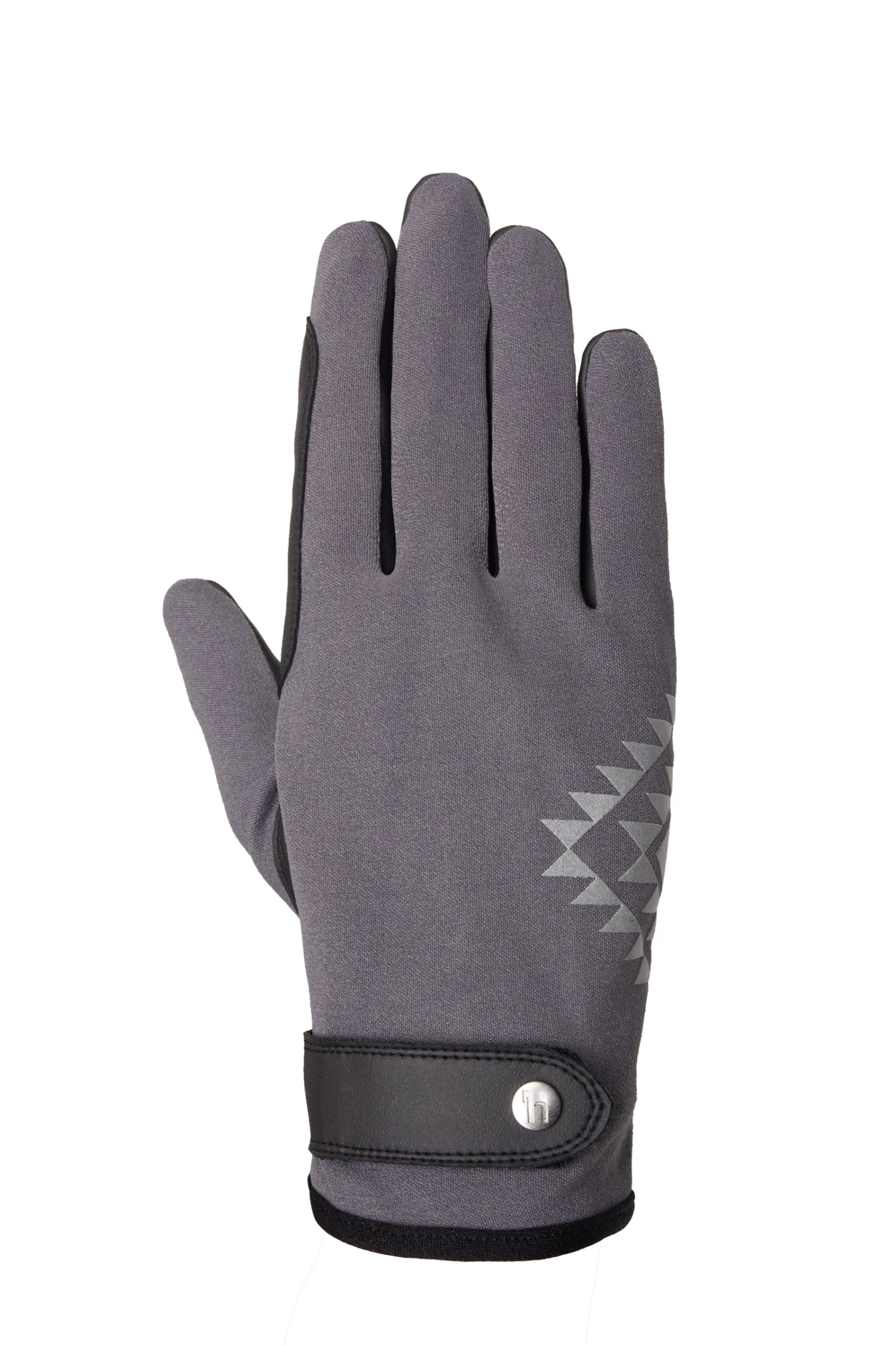 Perfect summer glove with it’s lightweight elastic fabric. The adjustable hook and loop closure for an optimal fit. Serino fabric on the palm for a good grip of the reins, with additonal reinforcements where the reins run. Heat ambossed Aztec print on the backhand.
