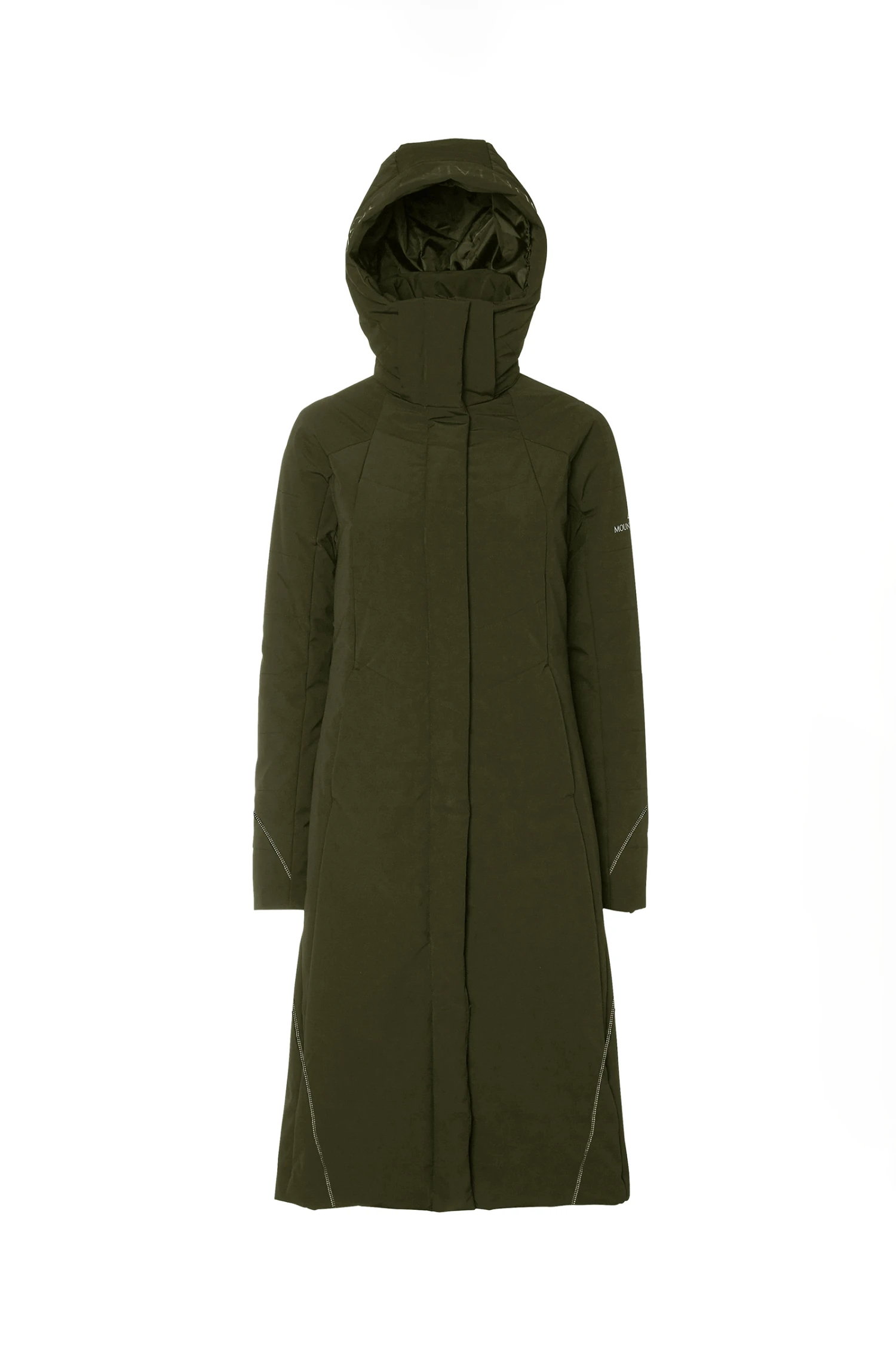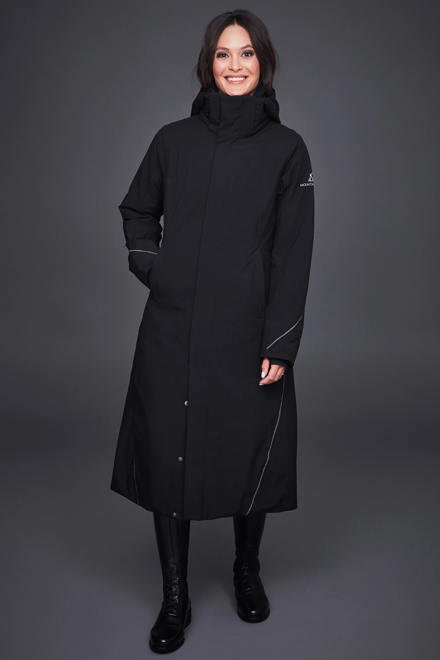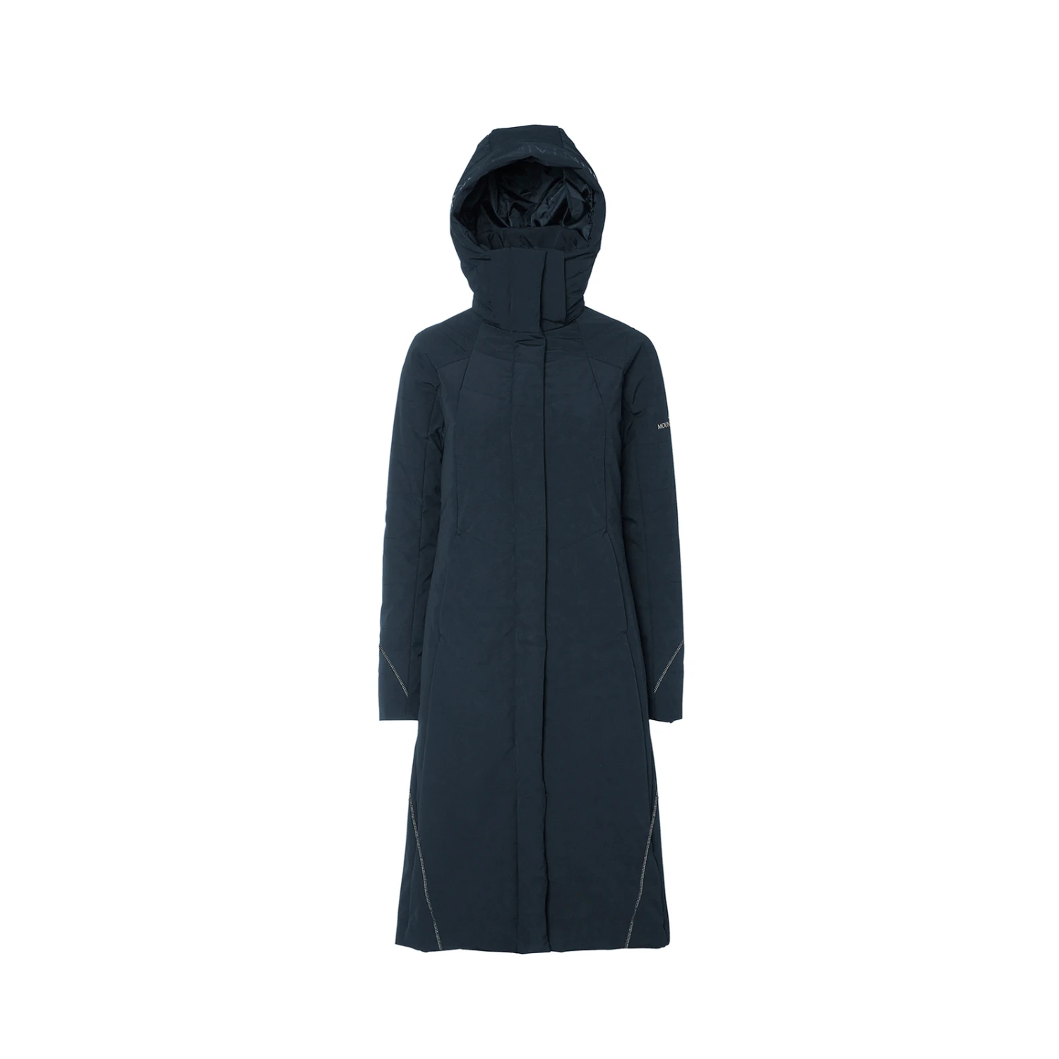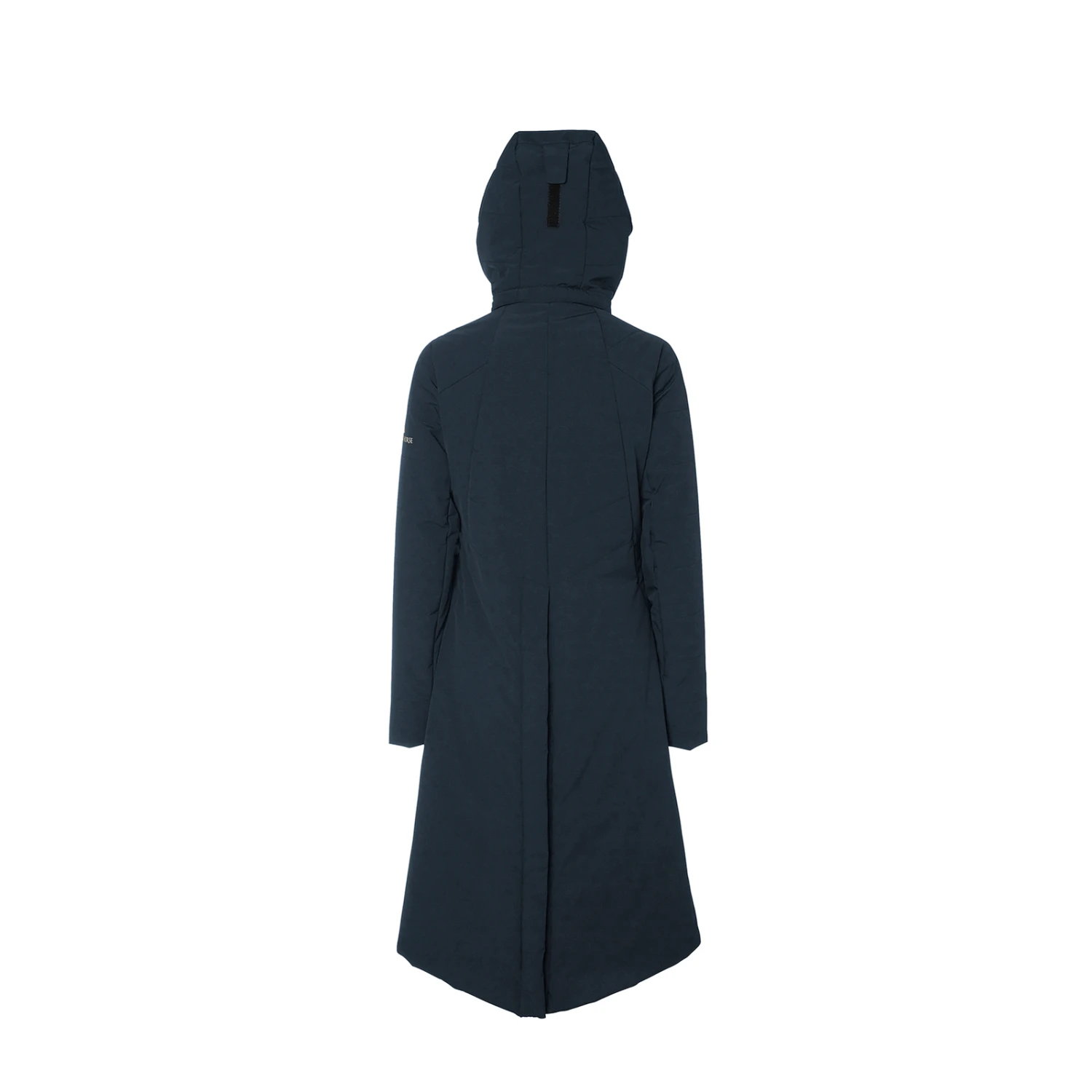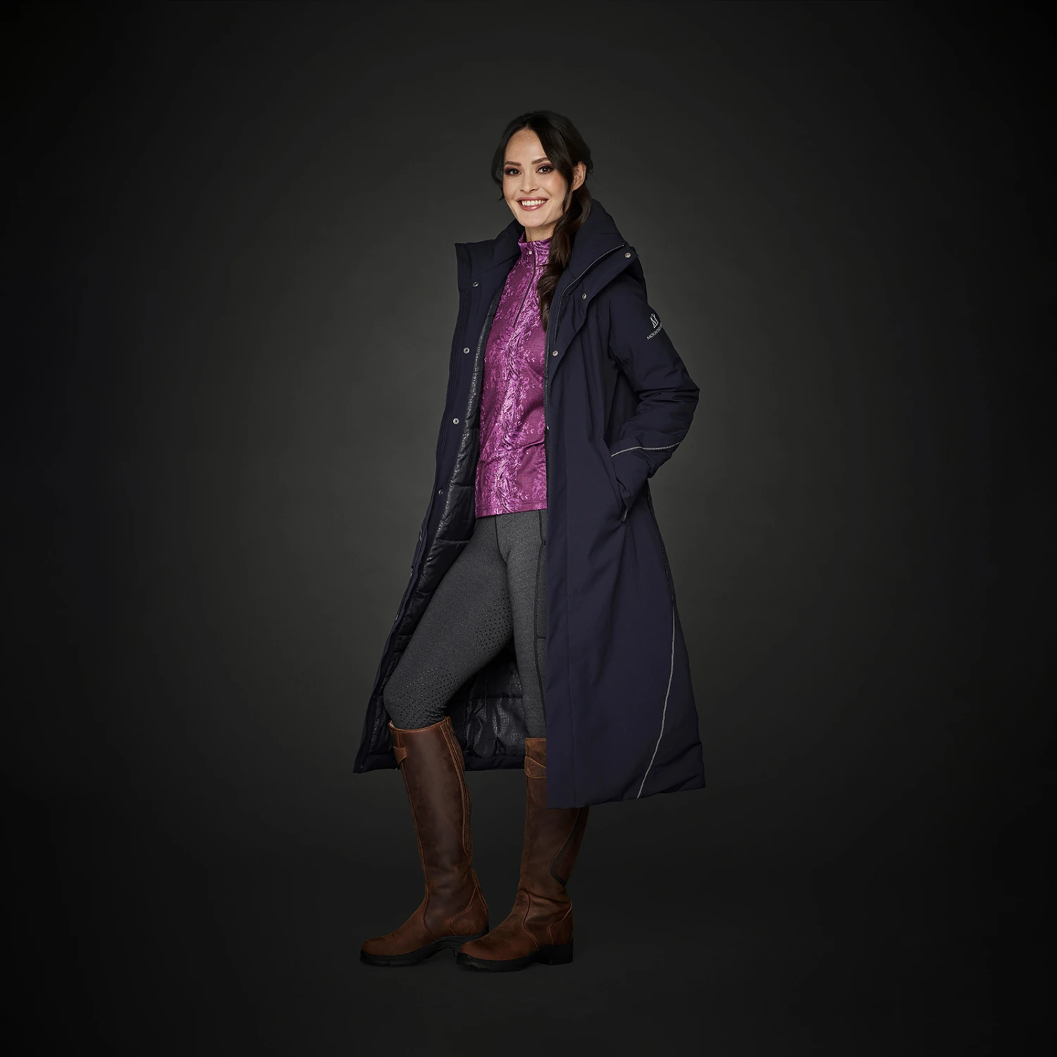 Alicia is a lightweight, padded coat with a detachable hood. The waterproof and windproof coat has a feminine cut that shapes the figure.. There are reflective details on the sleeves, back and front. So you are also clearly visible in the dark. With the 2-way zipper and long riding slit at the back that can be opened and closed with press studs, the coat is ideal for riding. For stowing treats and your mobile phone, there are zipped front pockets or an inner pocket made of mesh fabric.