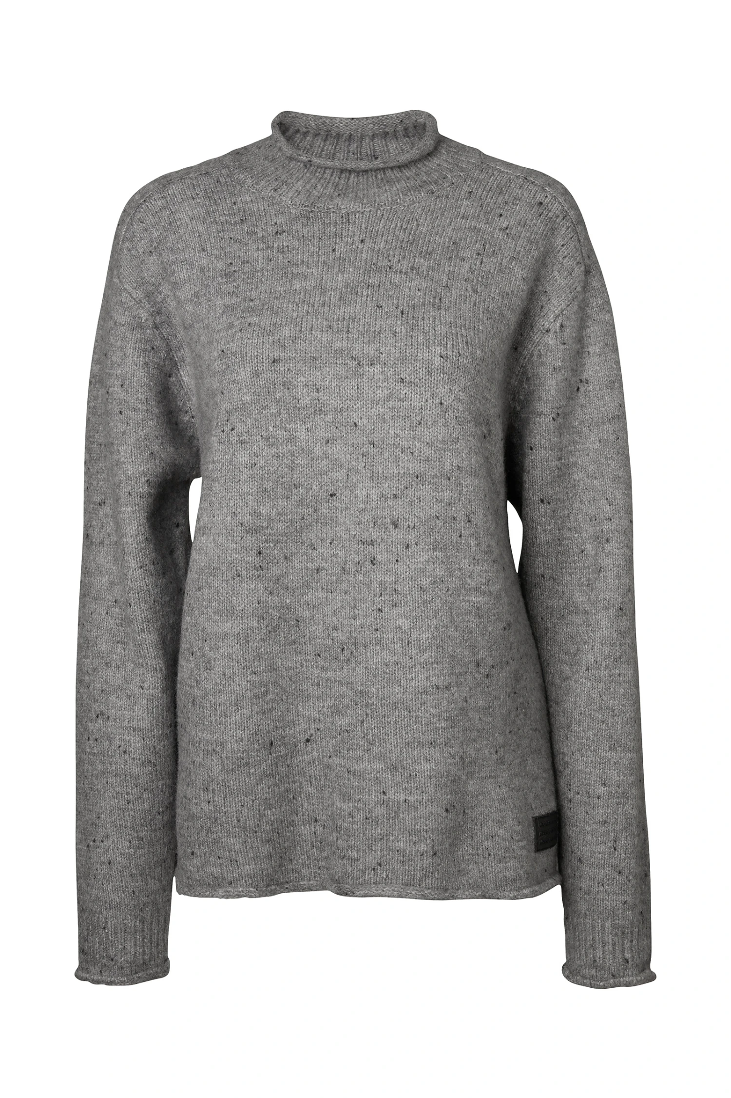 Crewneck pullover with a straight slightly oversized fit. Knitted in a super soft melange multifiber yarn.