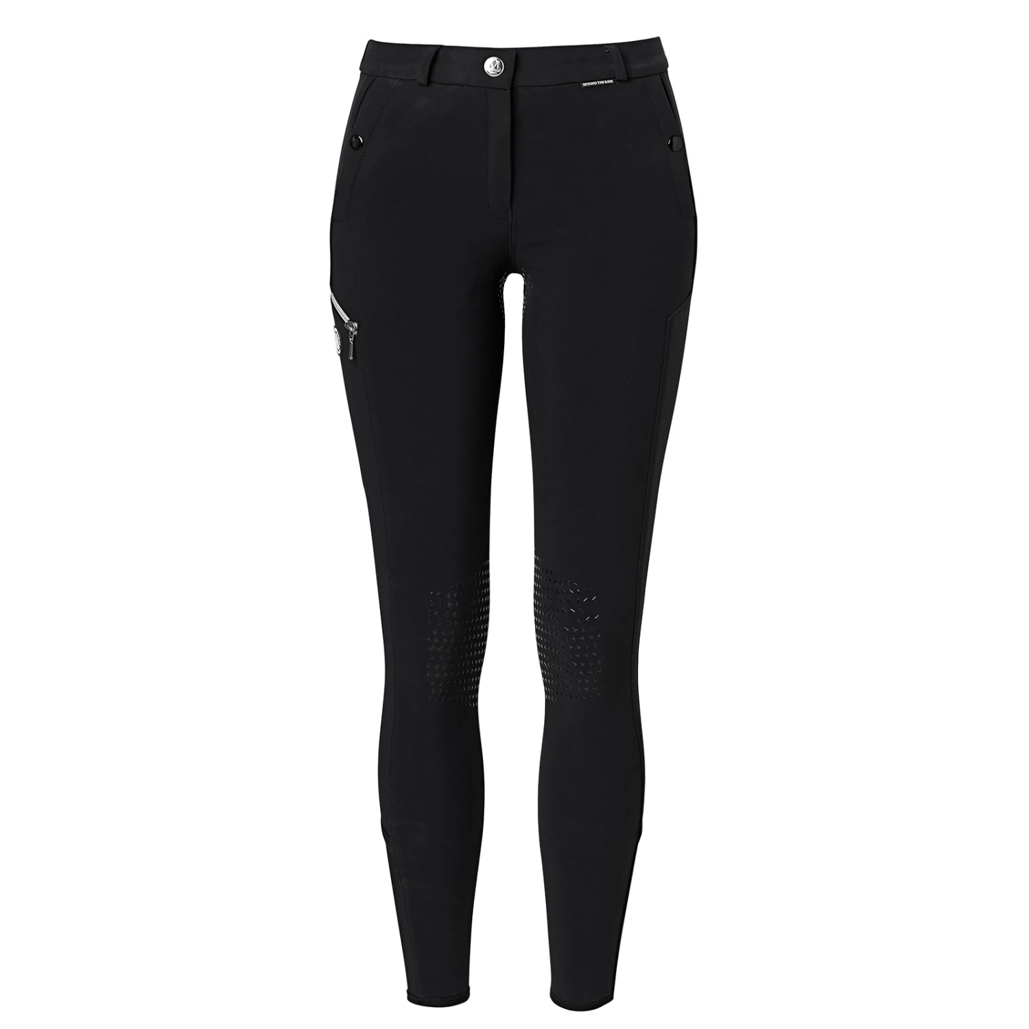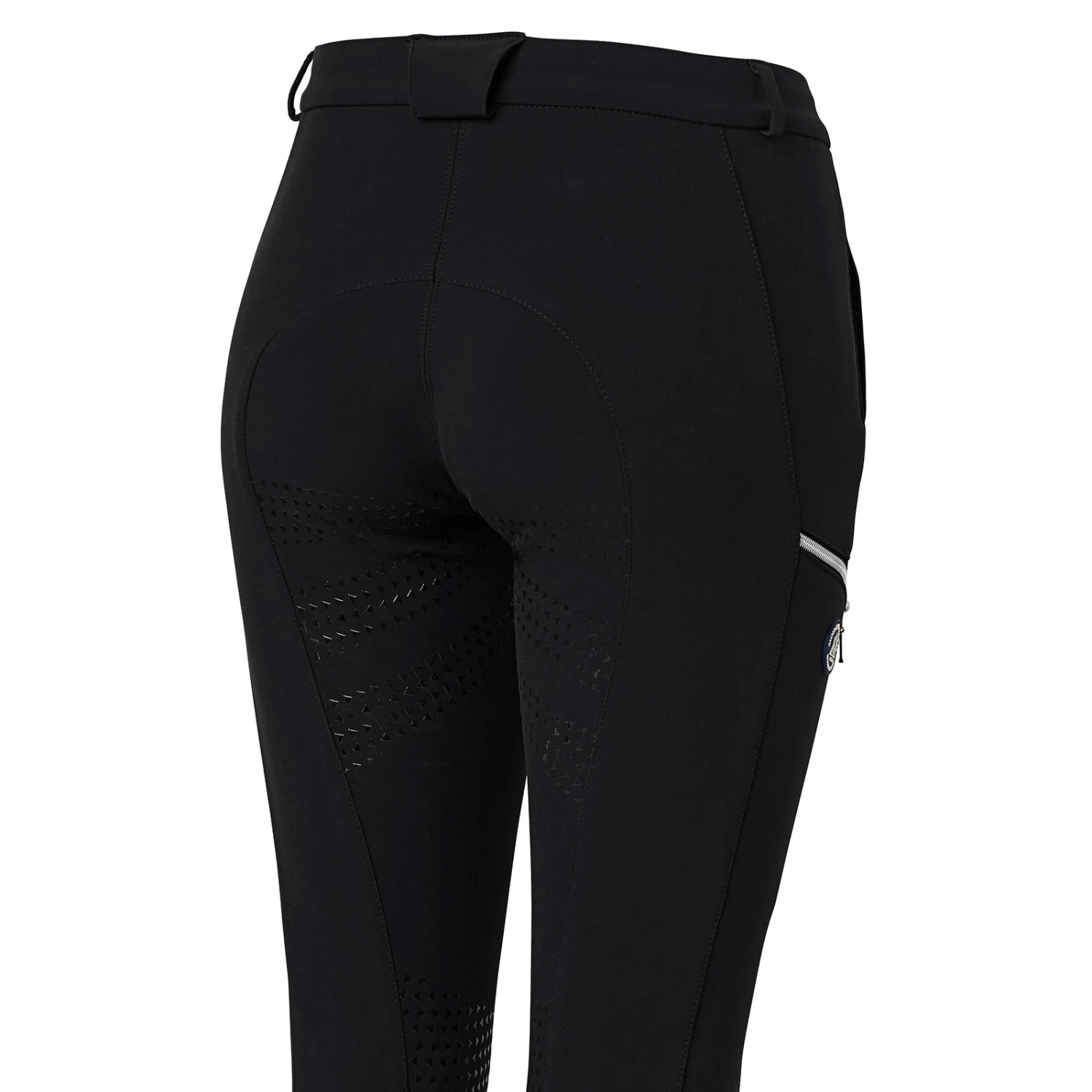 Winter riding breehces with a wind proof and water repellent outer shell and soft bonded fleece lining. Stretchable water repellent fabric Soft and durable fabric offers fabric with good comfort. MH triangel grip technology Provides extra grip in the saddle. Elastic leg bottom inserts For a perfect fit and comfort. Leg zipper pocket. Two front pockets. Stretch fabric insert at leg hem. Medium waist flat fly and shaped waistband for a great fit. Beltloops at waist. Large MH print at left leg.