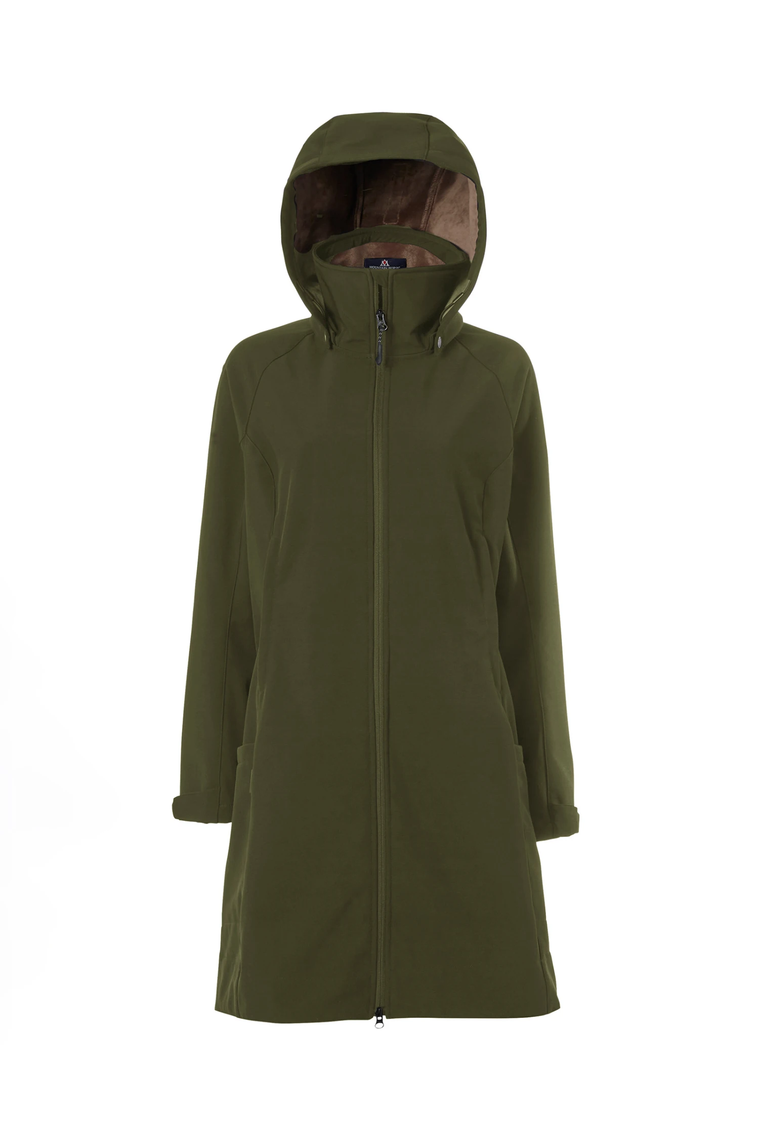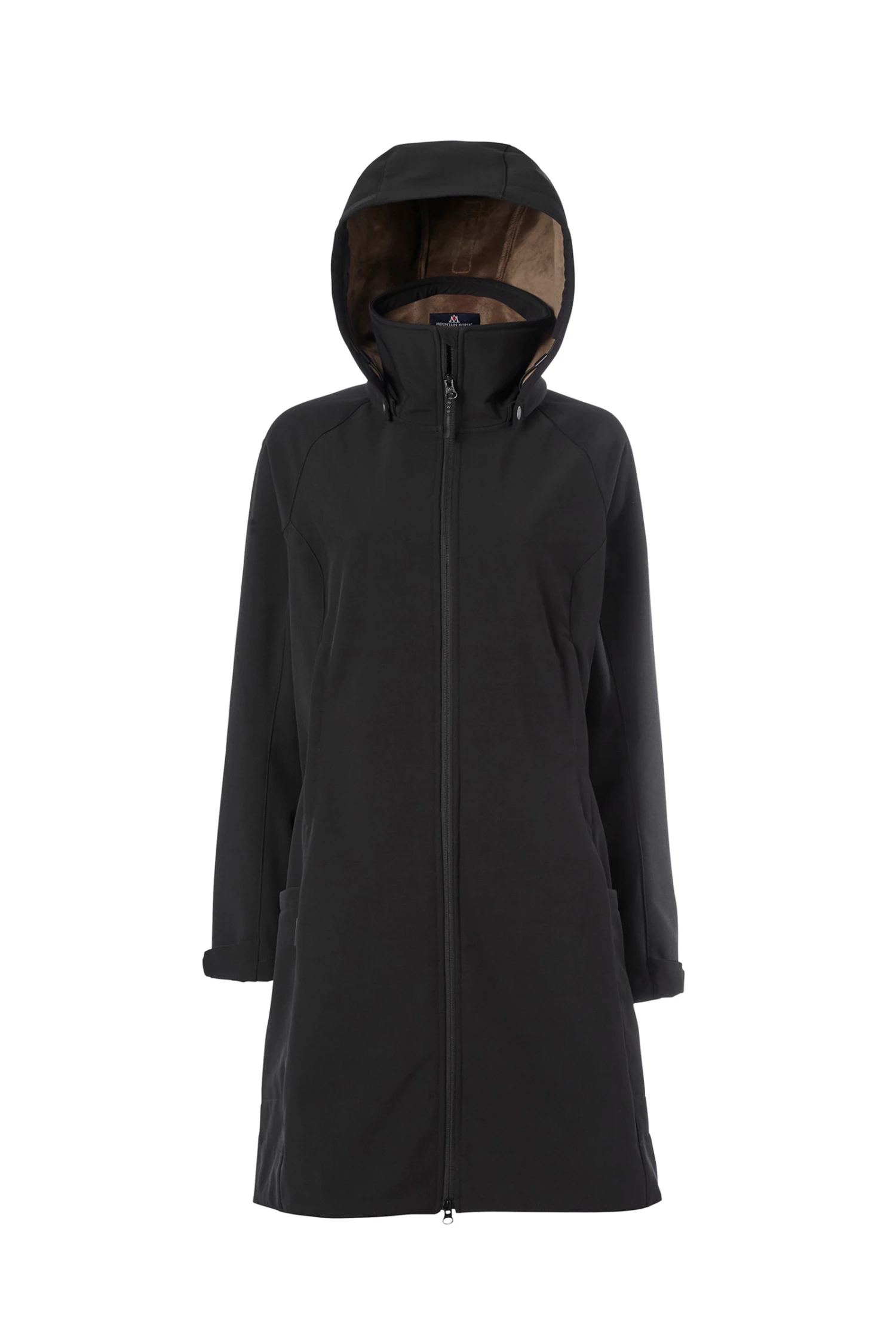 Functional water- and wind repellent softshell parka with feminine fit. Lined with soft teddy, long zipper opening at back and detachable hood.