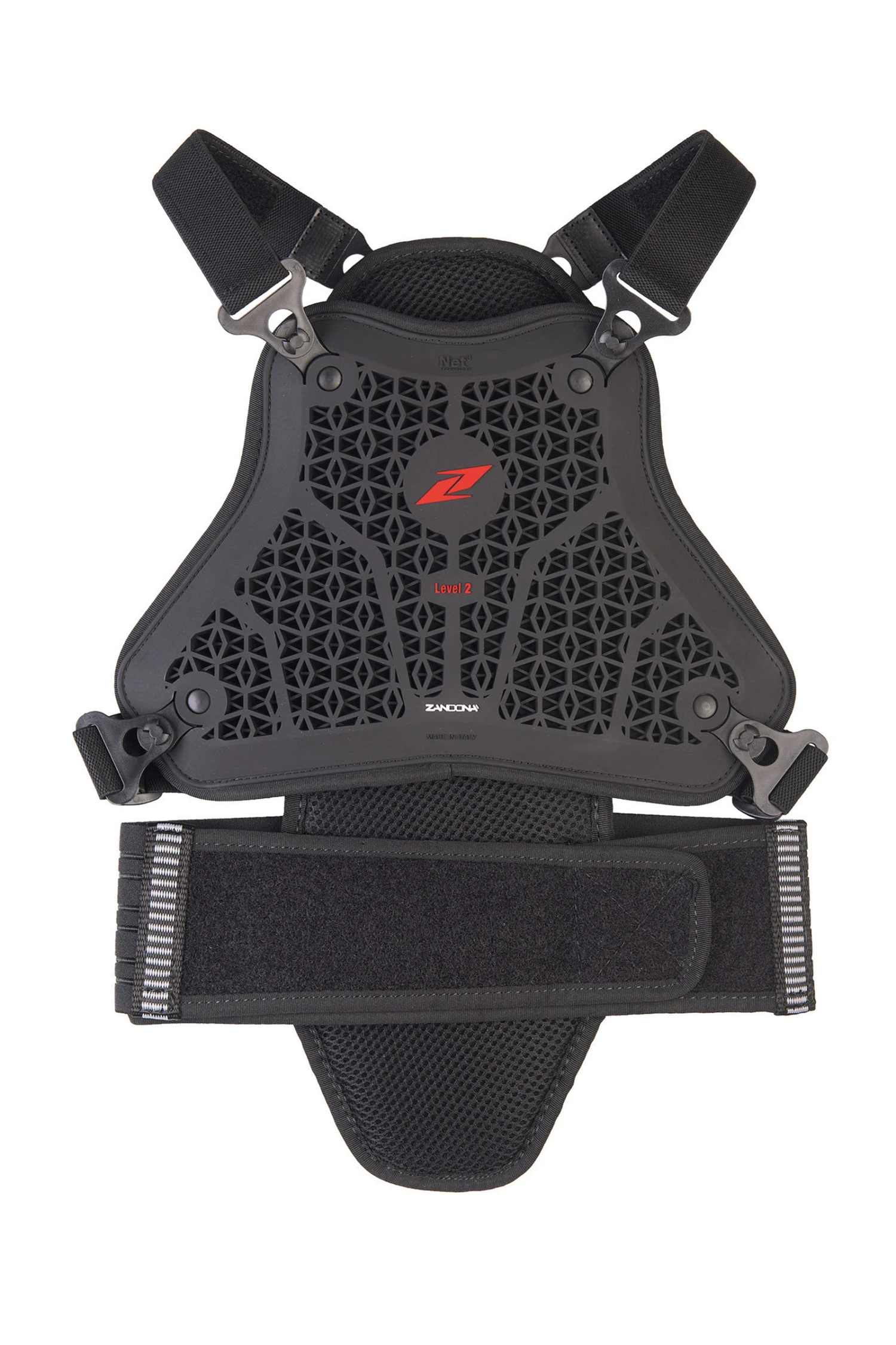 The back protector is completely foldable and, by removing the chest protector, can be used individually by adding accessory braces, sold separately.